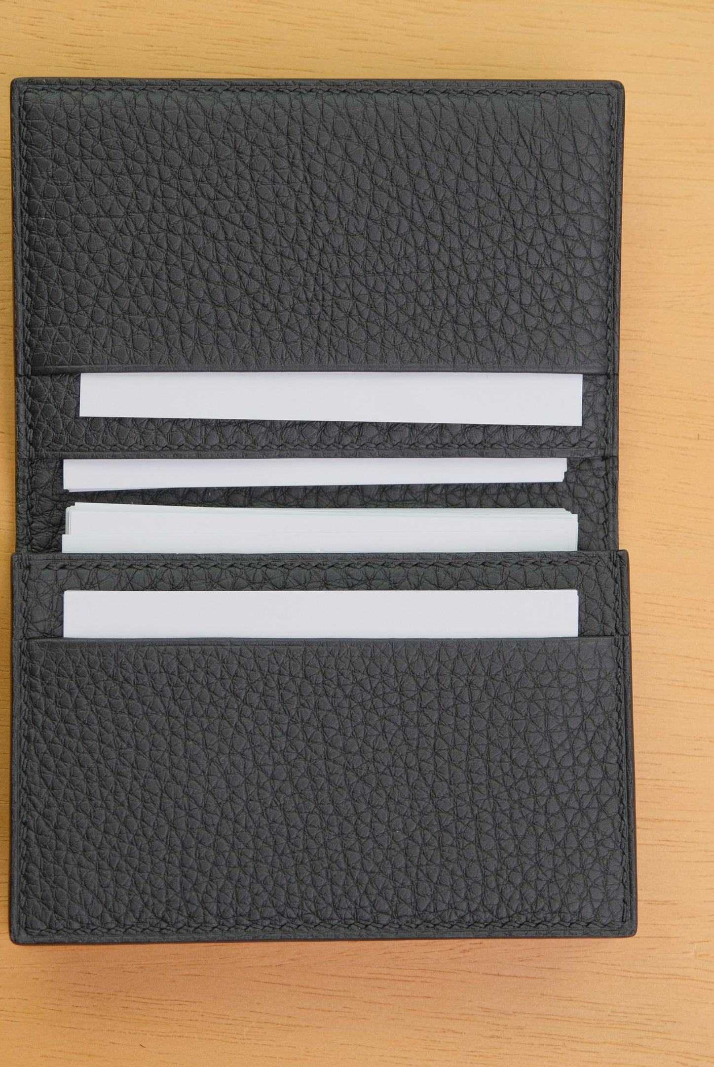 職人が手作業で製作を行います。革の裁断から縫製、縁塗りまで、すべて手作業で仕上げます。