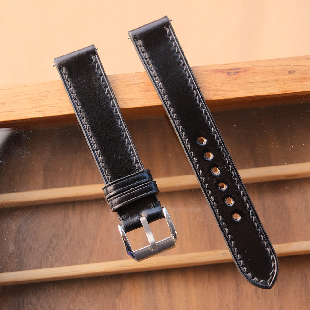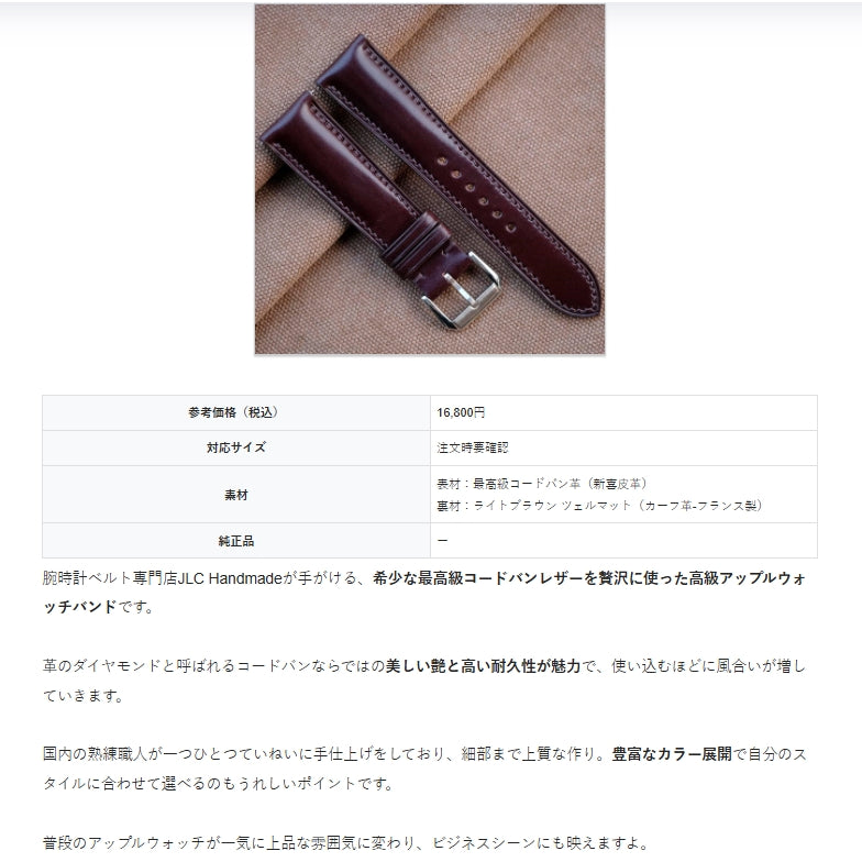 "既存のベルトが短すぎて困っていたところ、こちらで理想的な長さ調整をしていただきました。レザーの質感も素晴らしく、高級時計にふさわしい仕上がりです。"