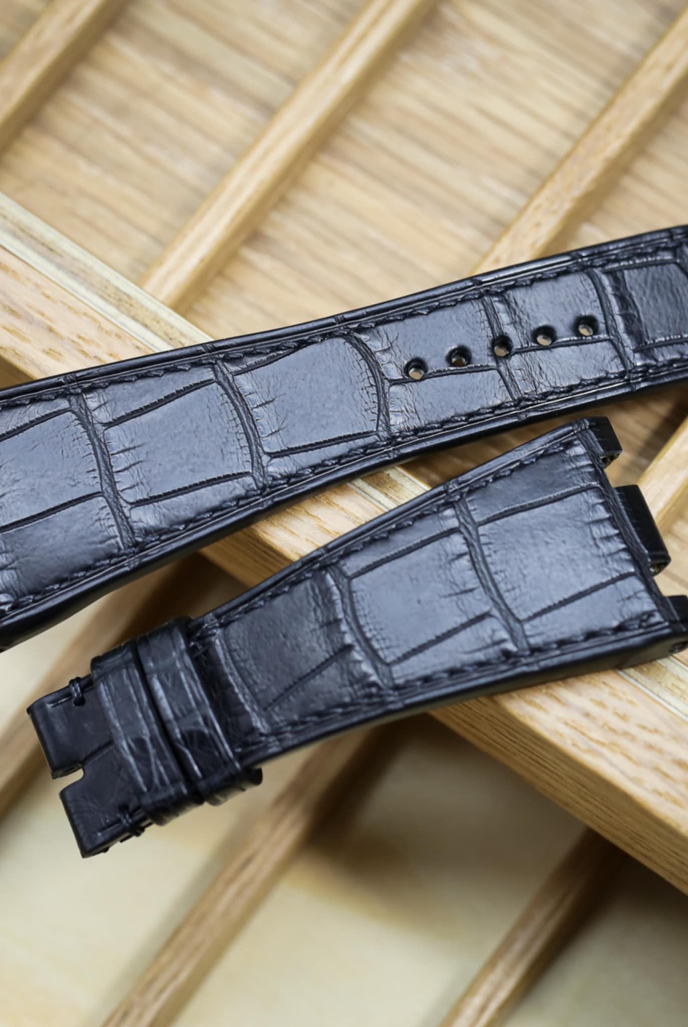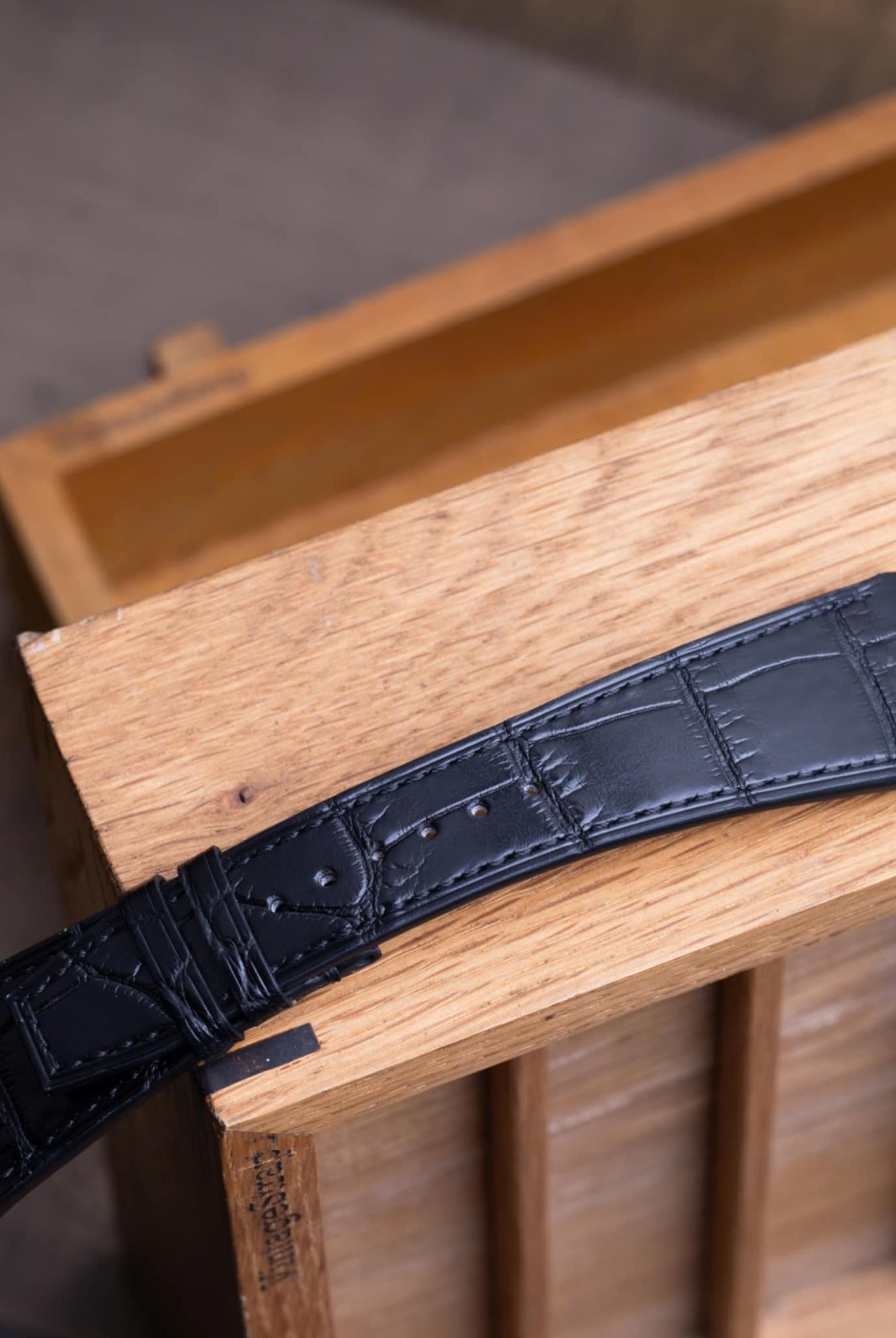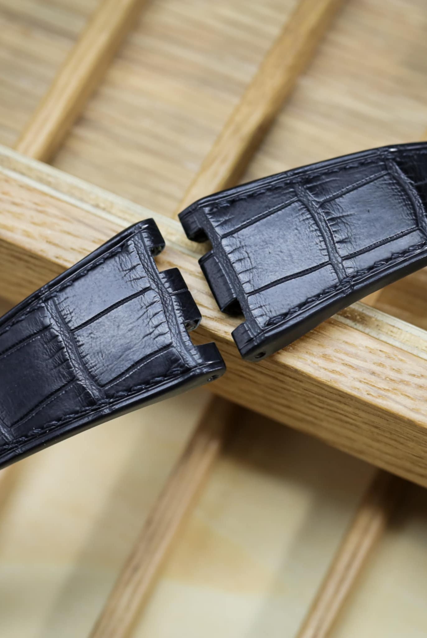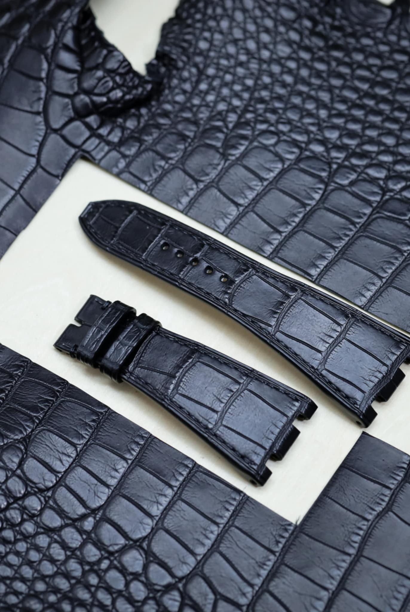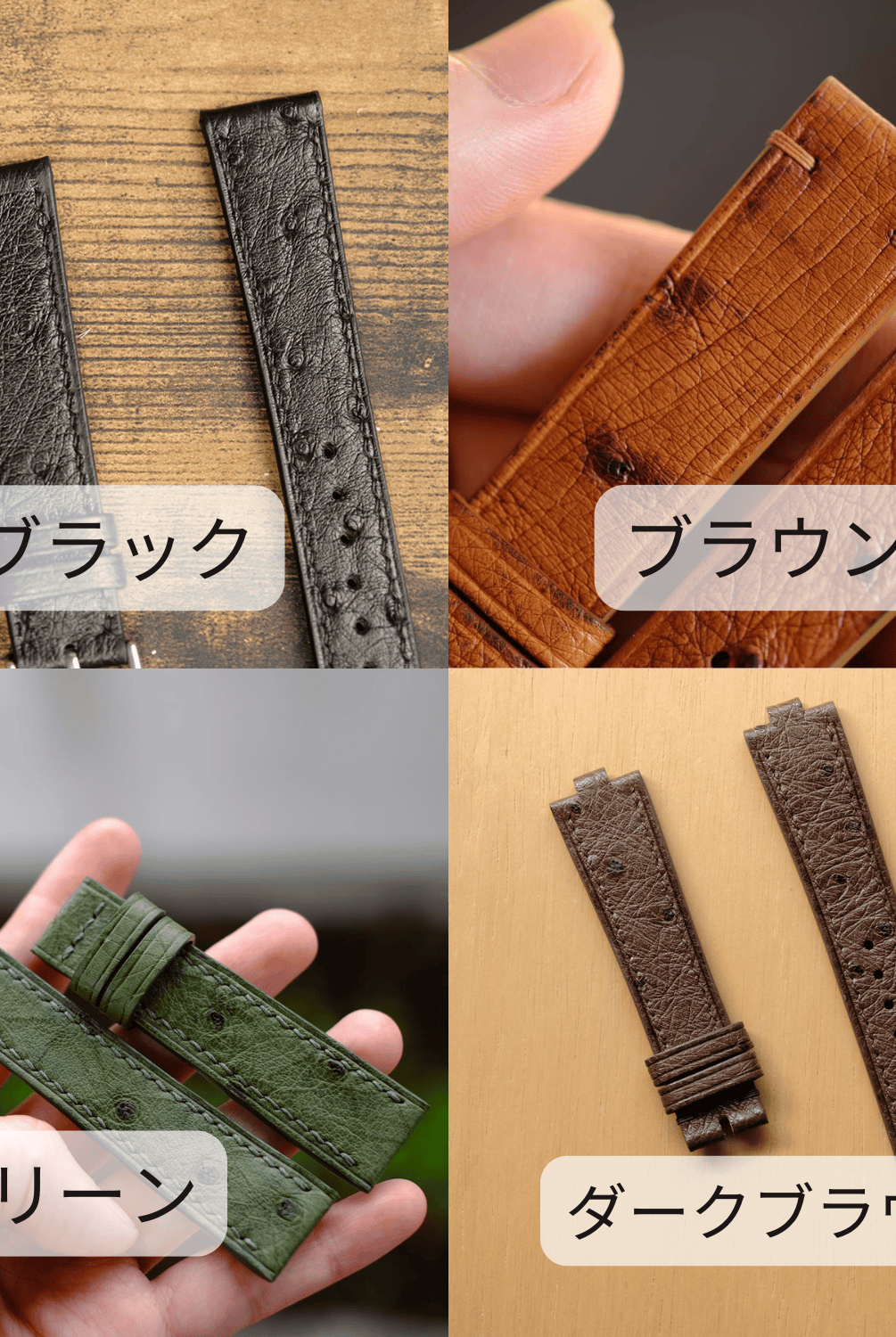 Obreyに相応しい、オーストリッチレッグ革時計ベルト革をブラック色&裏面ステッチなし技術で製作いたします。敏感肌・アレルギー体質の方の症状と、時計バンドの構造を深く理解した専門職人が、一本一本丁寧に手作りでお仕上げします。天然素材の優しさと革新技術が調和した、痛くない究極の腕時計バンドをお届けします。