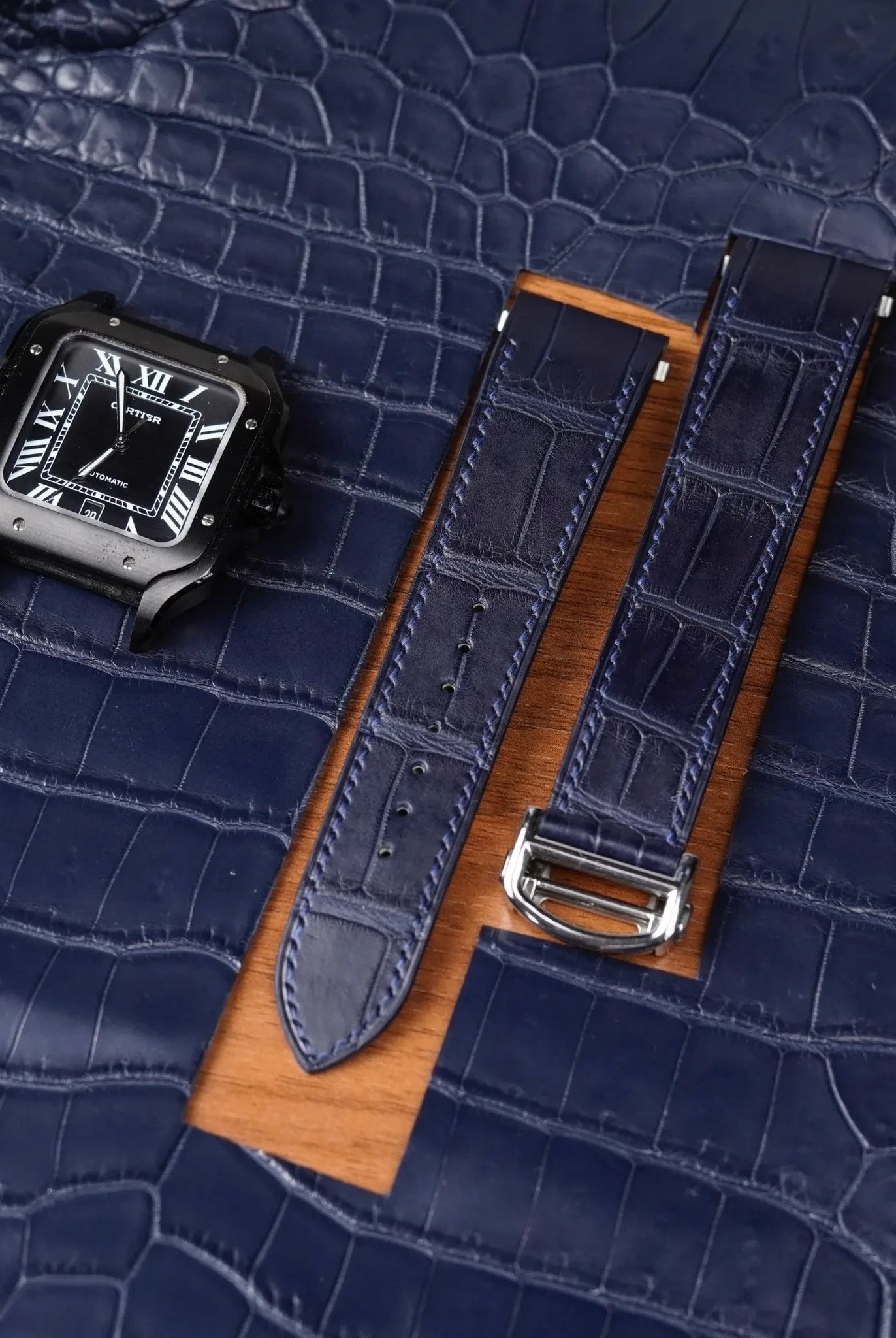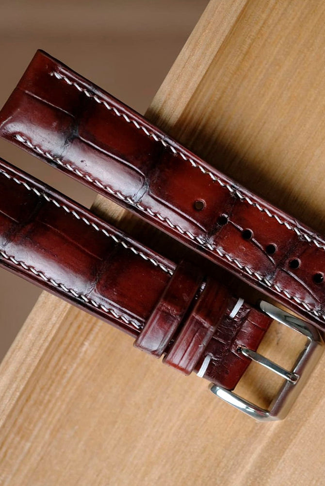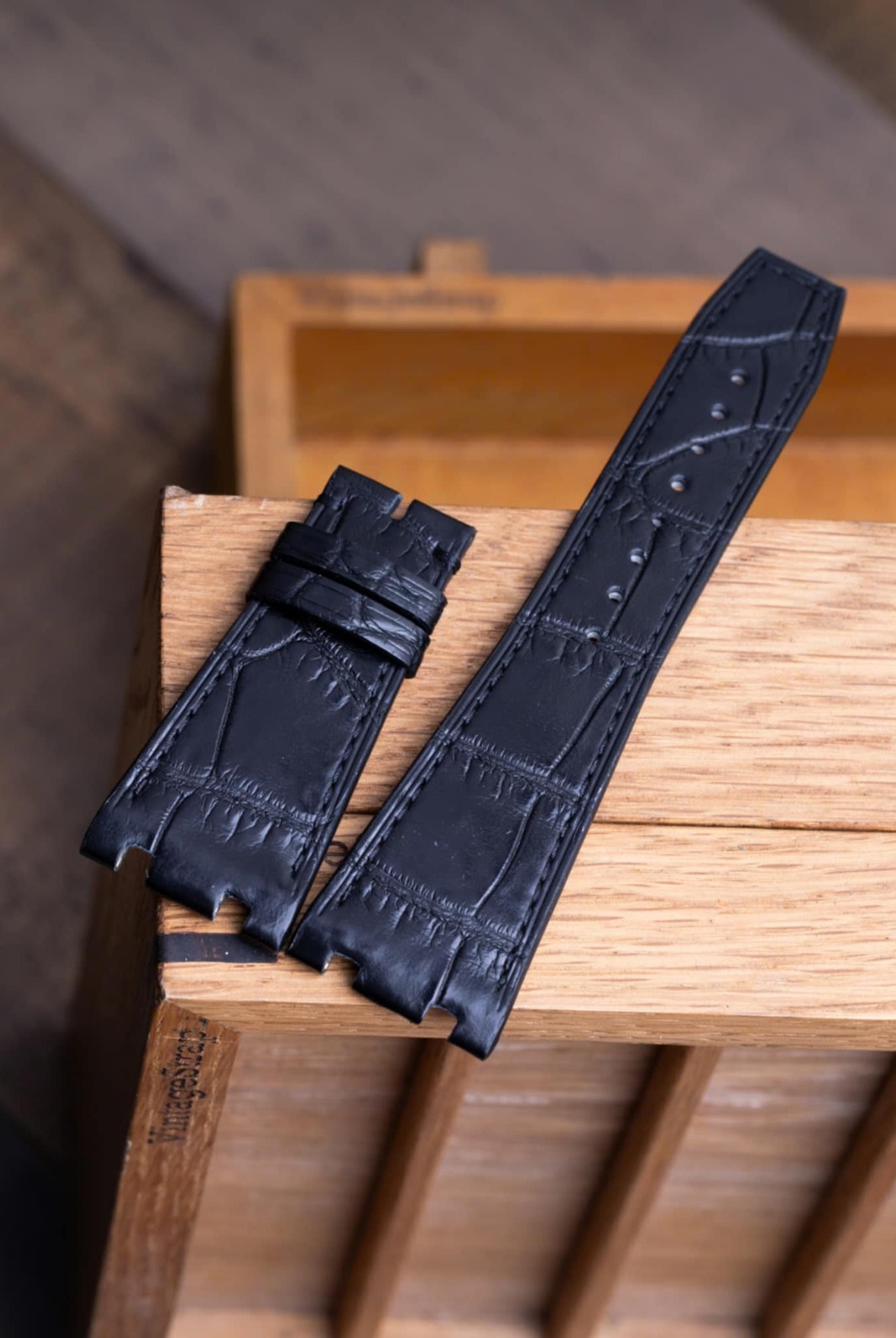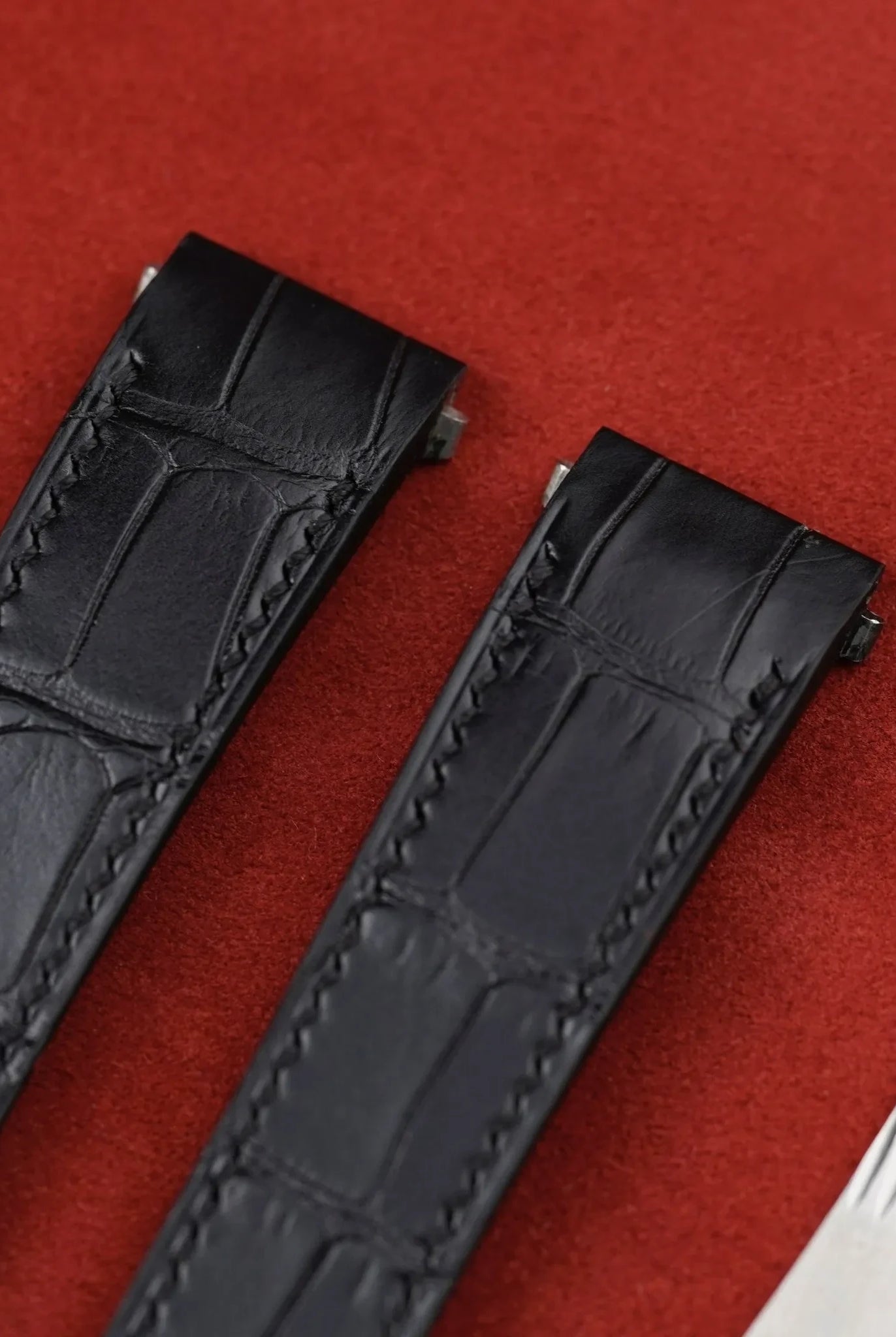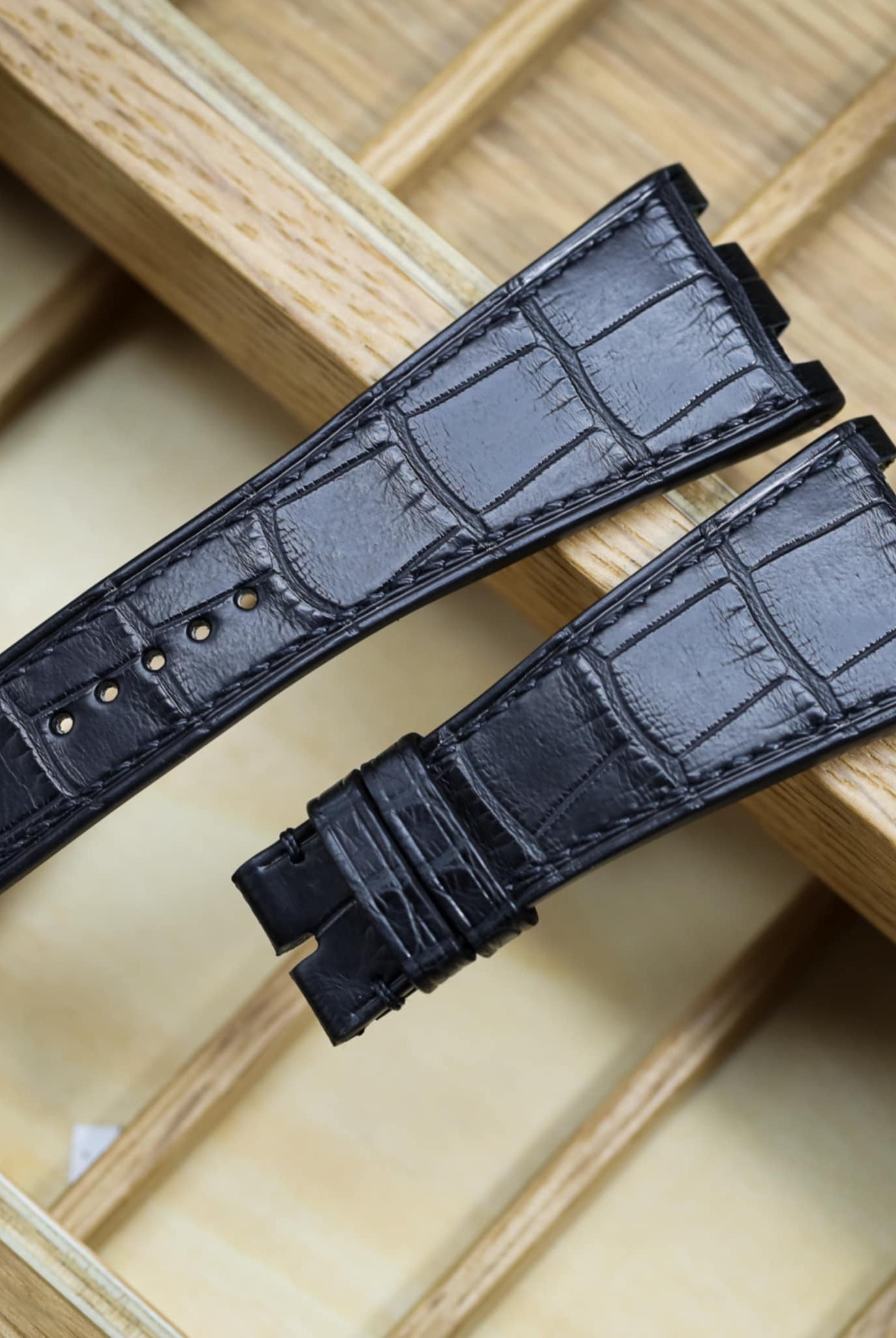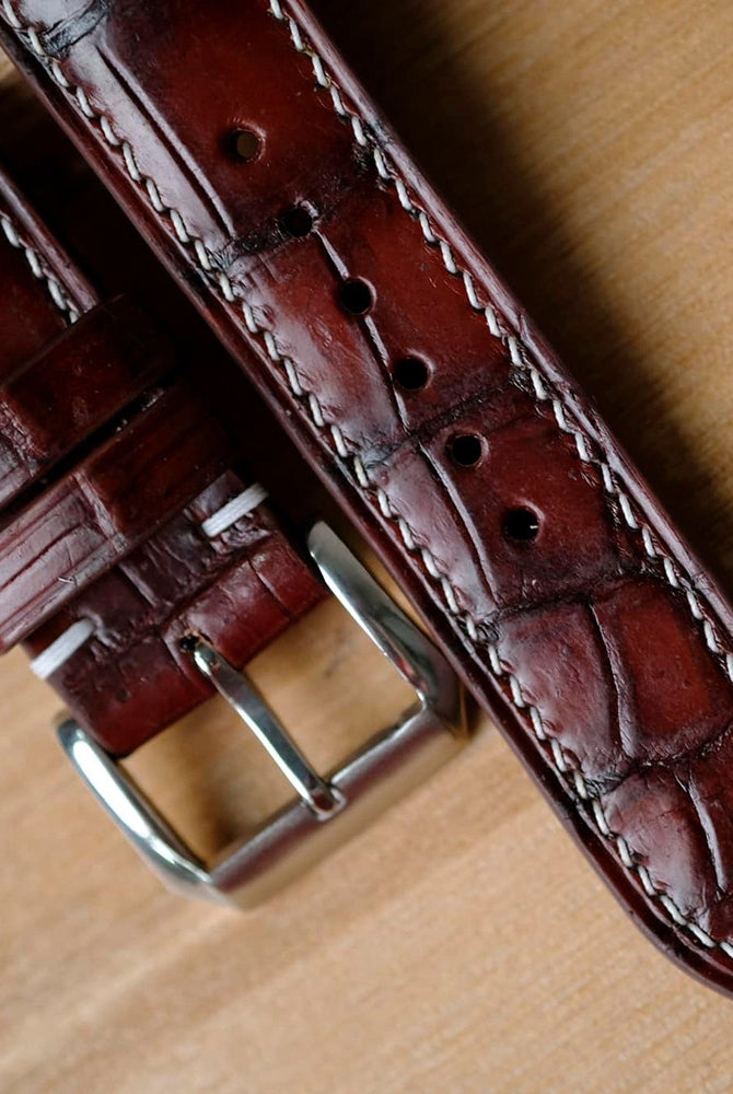 Obreyに相応しい、オーストリッチレッグ革時計ベルト革をブラック色&裏面ステッチなし技術で製作いたします。敏感肌・アレルギー体質の方の症状と、時計バンドの構造を深く理解した専門職人が、一本一本丁寧に手作りでお仕上げします。天然素材の優しさと革新技術が調和した、痛くない究極の腕時計バンドをお届けします。