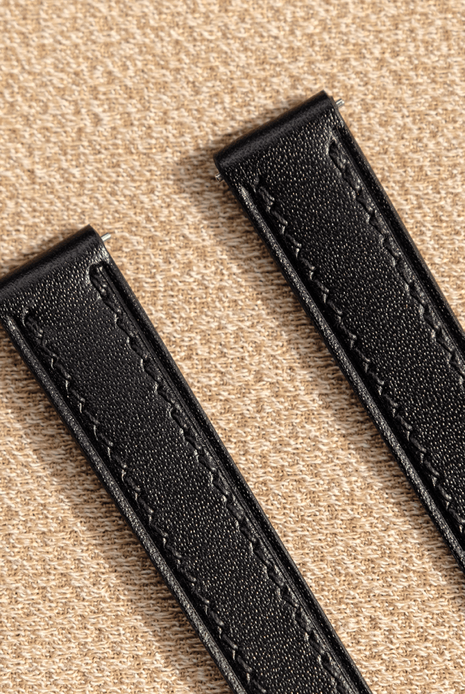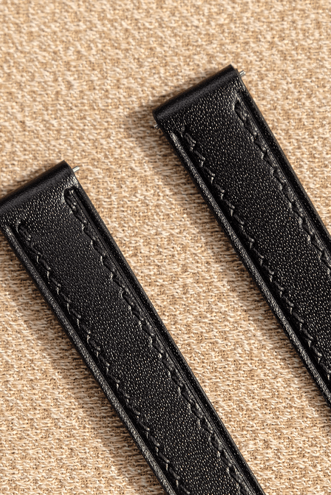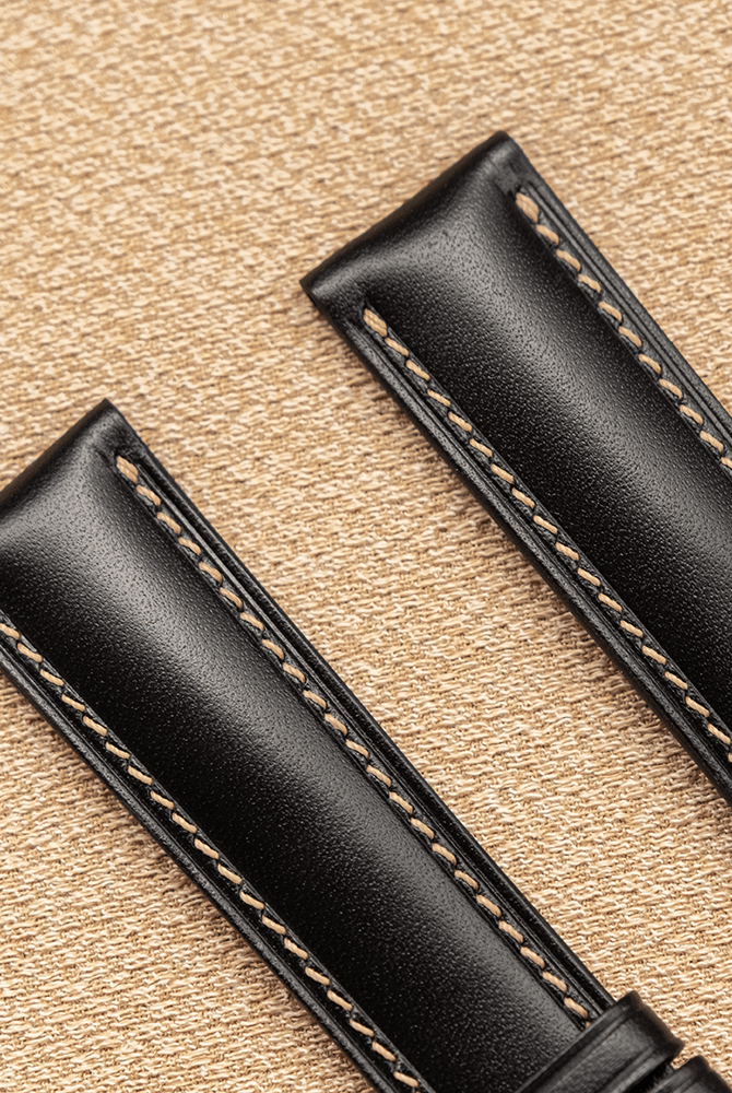 あなたのObreyを、オーストリッチレッグ革 ブラック 裏面ステッチなし時計ベルト革で快適に変身させませんか?