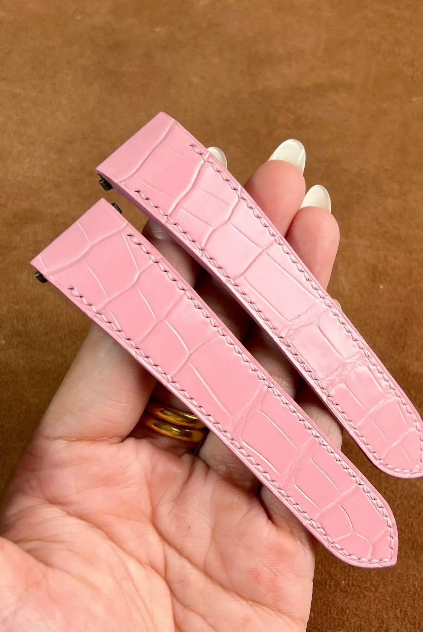 敏感肌の方、時計で痛い・かぶれる・アレルギーでお困りの方に朗報です!Obrey専用のオーストリッチレッグ革時計ベルト革を裏面ステッチなし技術で製作いたします。