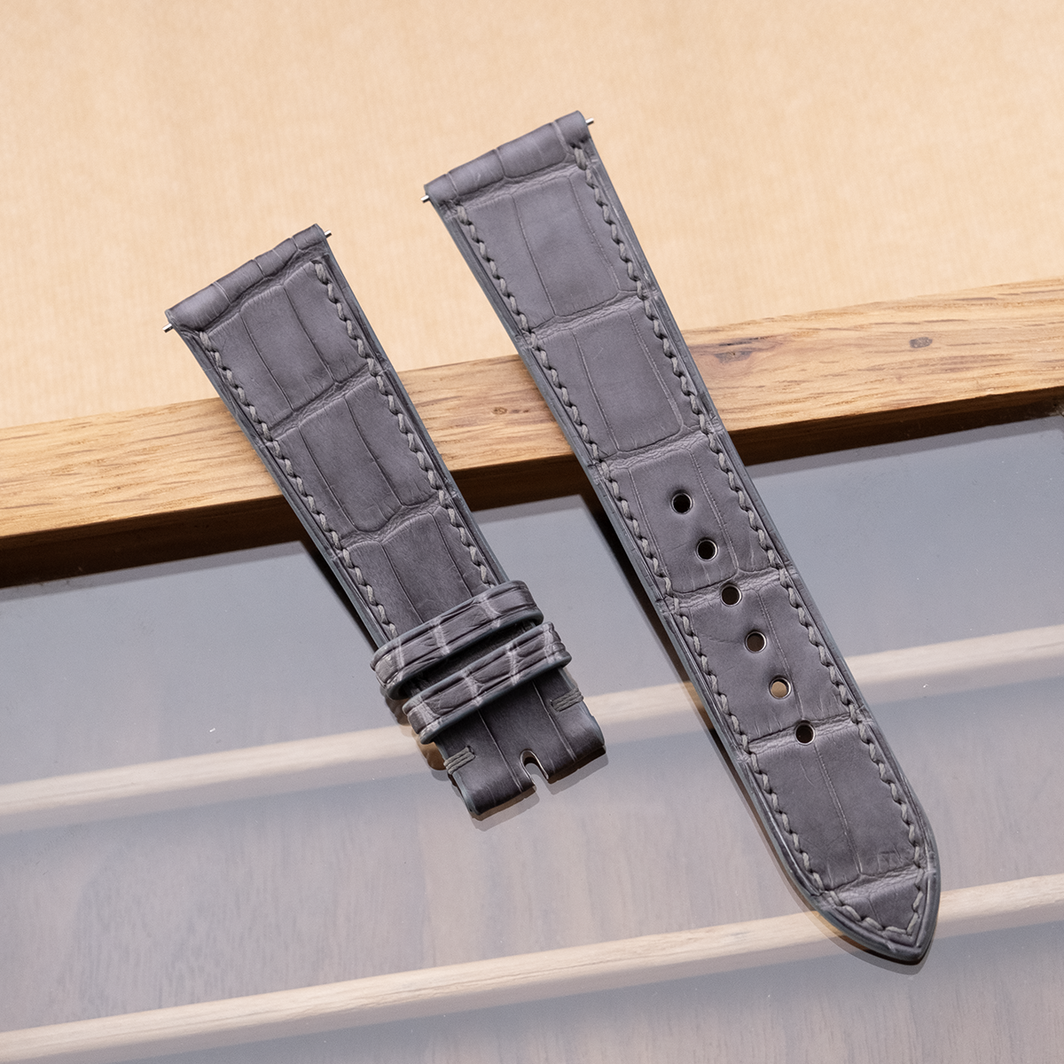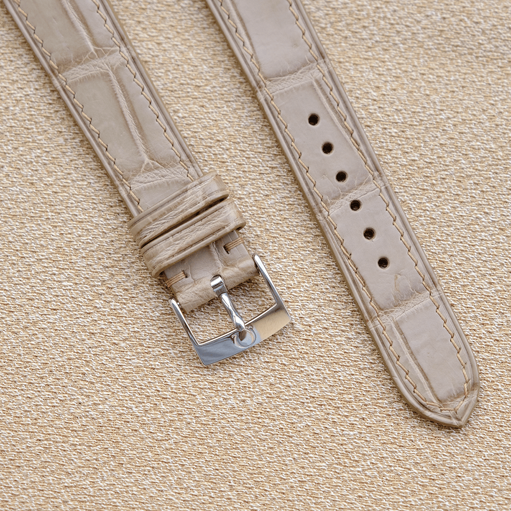 【オーダーメイド】 ベージュ 墨 クロコダイル アリゲーターワニ革 フラットタイプ 時計バンド 本ワニ革 本革 腕時計ベルト アップルウォッチバンド 凹凸型 カーブエンド (弓カン) 特殊形状