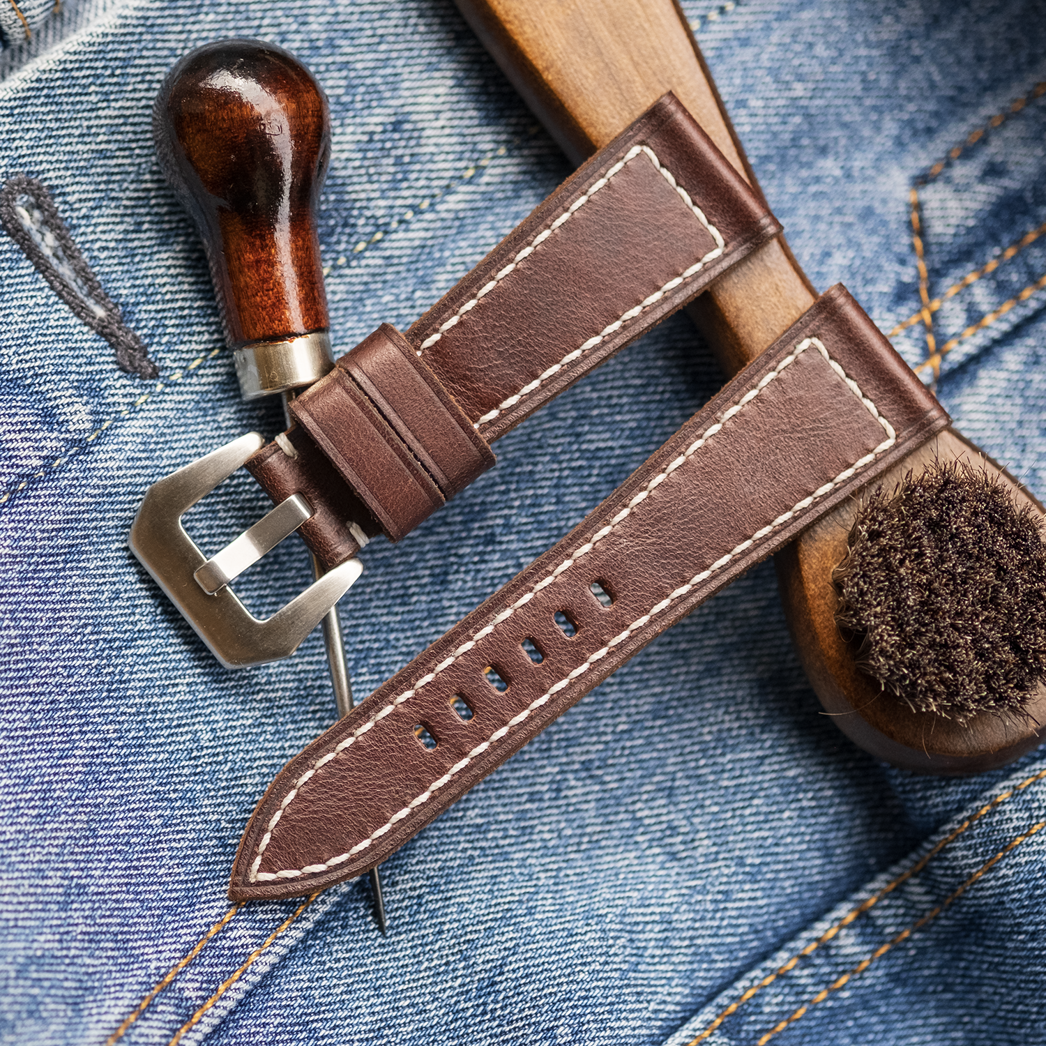 お好みの革素材から、手首にぴったりの長さ、個性を表現する色合い、そして唯一無二の形状まで - すべてはお客様のご希望で決まります。私たちはお客様のお声に耳を傾け、想いを汲み取り、一針一針丁寧に仕上げて、世界でただひとつのあなただけの時計ストラップをお作りします。