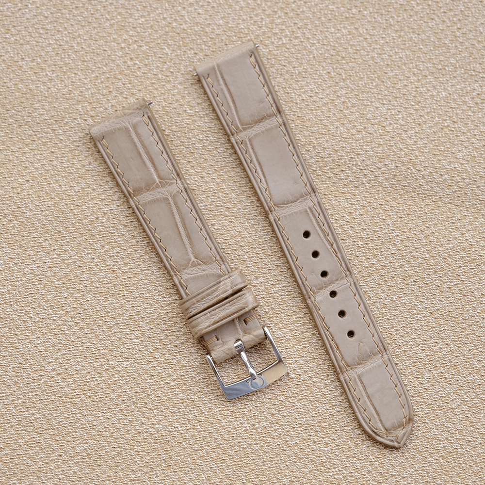 ベージュ ストーングレー クロコダイル アリゲーターワニ革 フラットタイプ 時計バンド 本ワニ革 本革 腕時計ベルト アップルウォッチバンド 凹凸型 カーブエンド (弓カン) 特殊形状