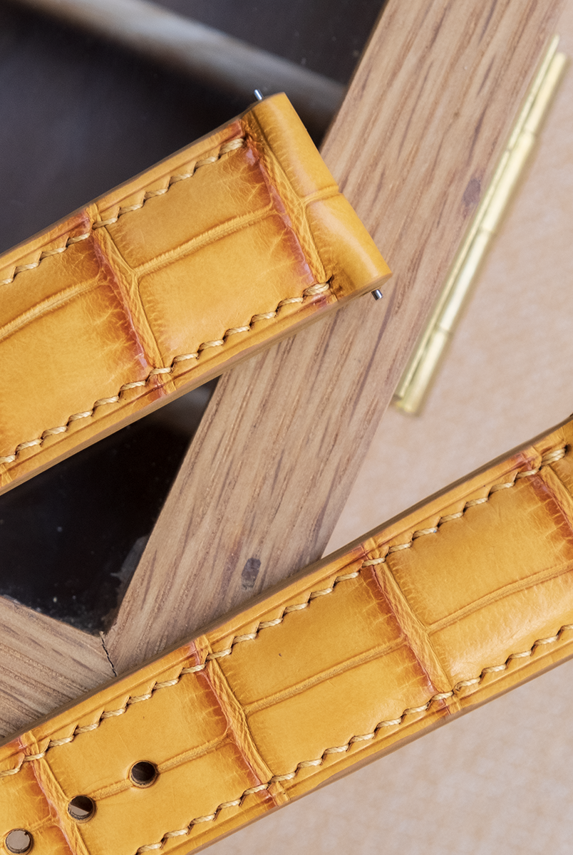 表材:タケフ 高級クロコダイル/アリゲーター (ヘンローン社、AMTAN社)