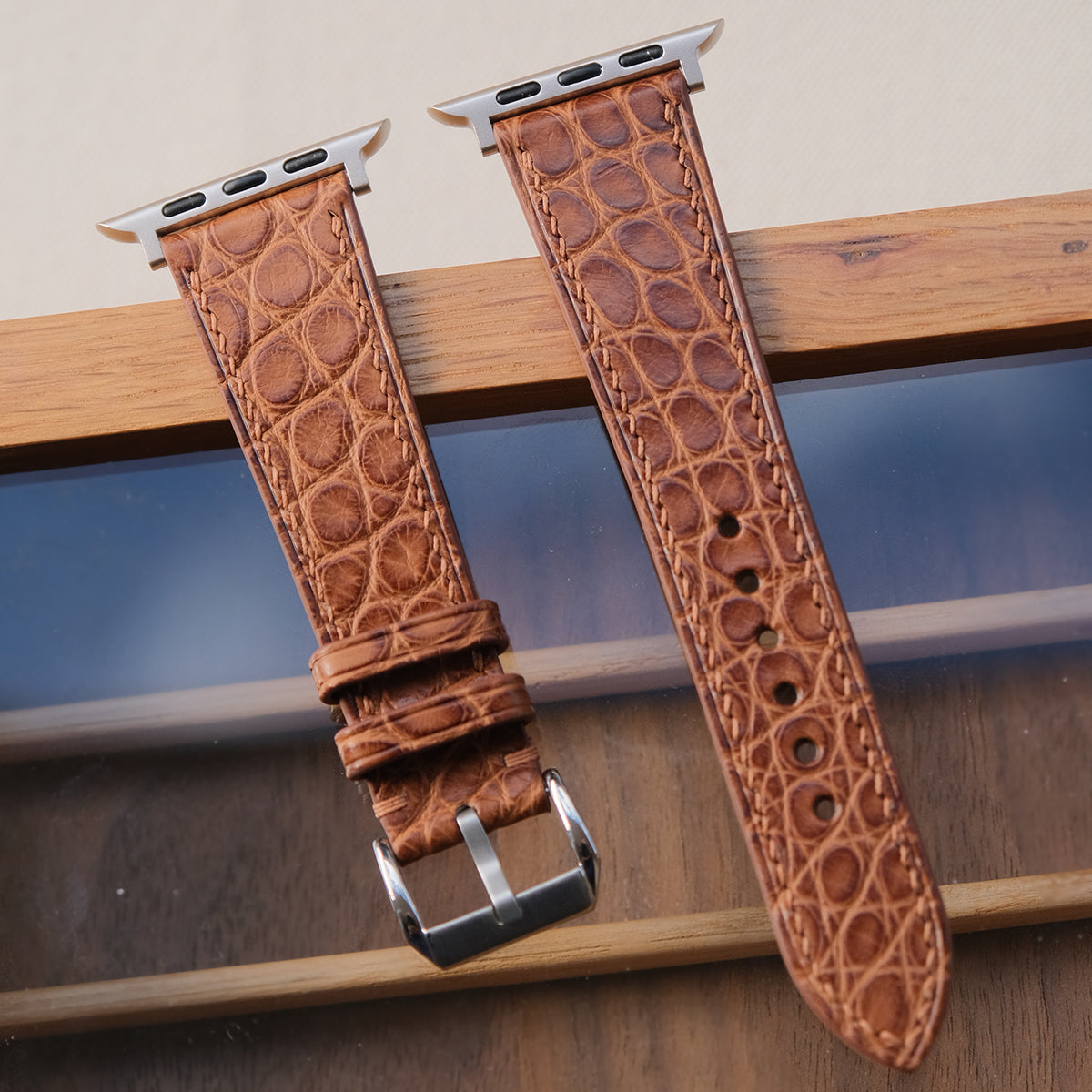 【すぐ発送可】 アップルウォッチ38mm~49mm 長さ75/115mm ウォルナット クロコダイル