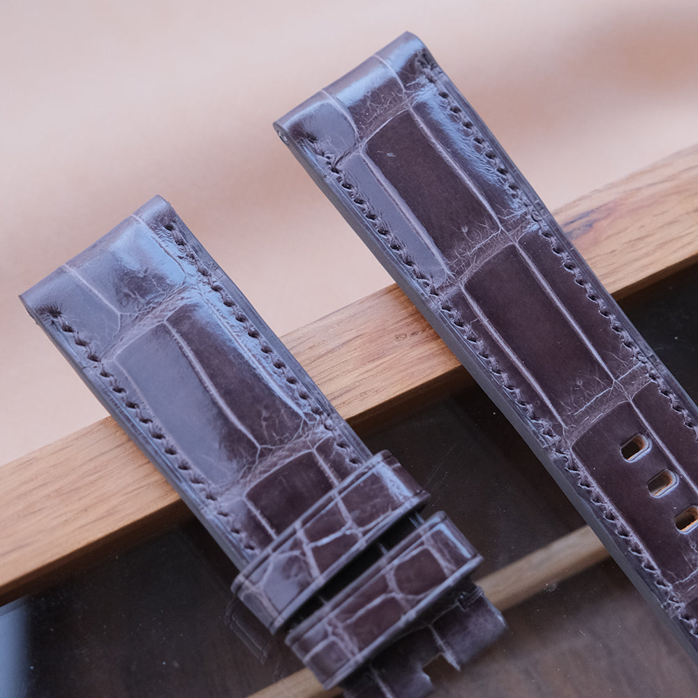 【すぐ発送可】 パネライ用 24-22 長さ75/125mm ダークブラウン 艶強い クロコダイル