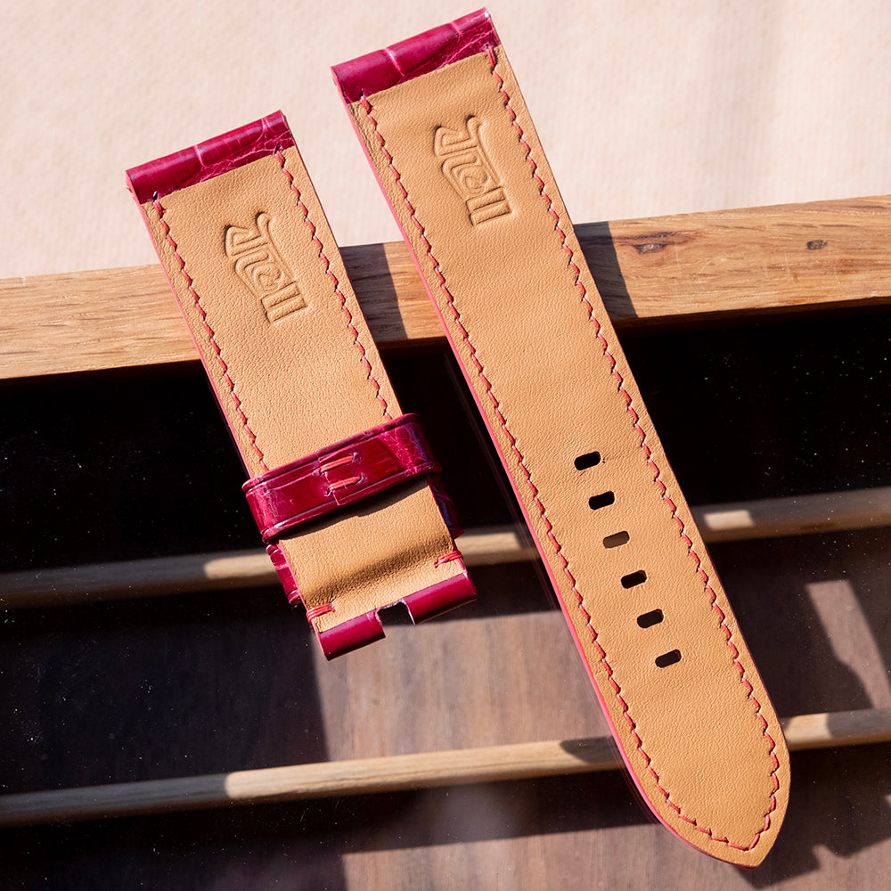 【すぐ発送可】 パネライ用 24-22 長さ75/125mm ボルドー 艶強い クロコダイル