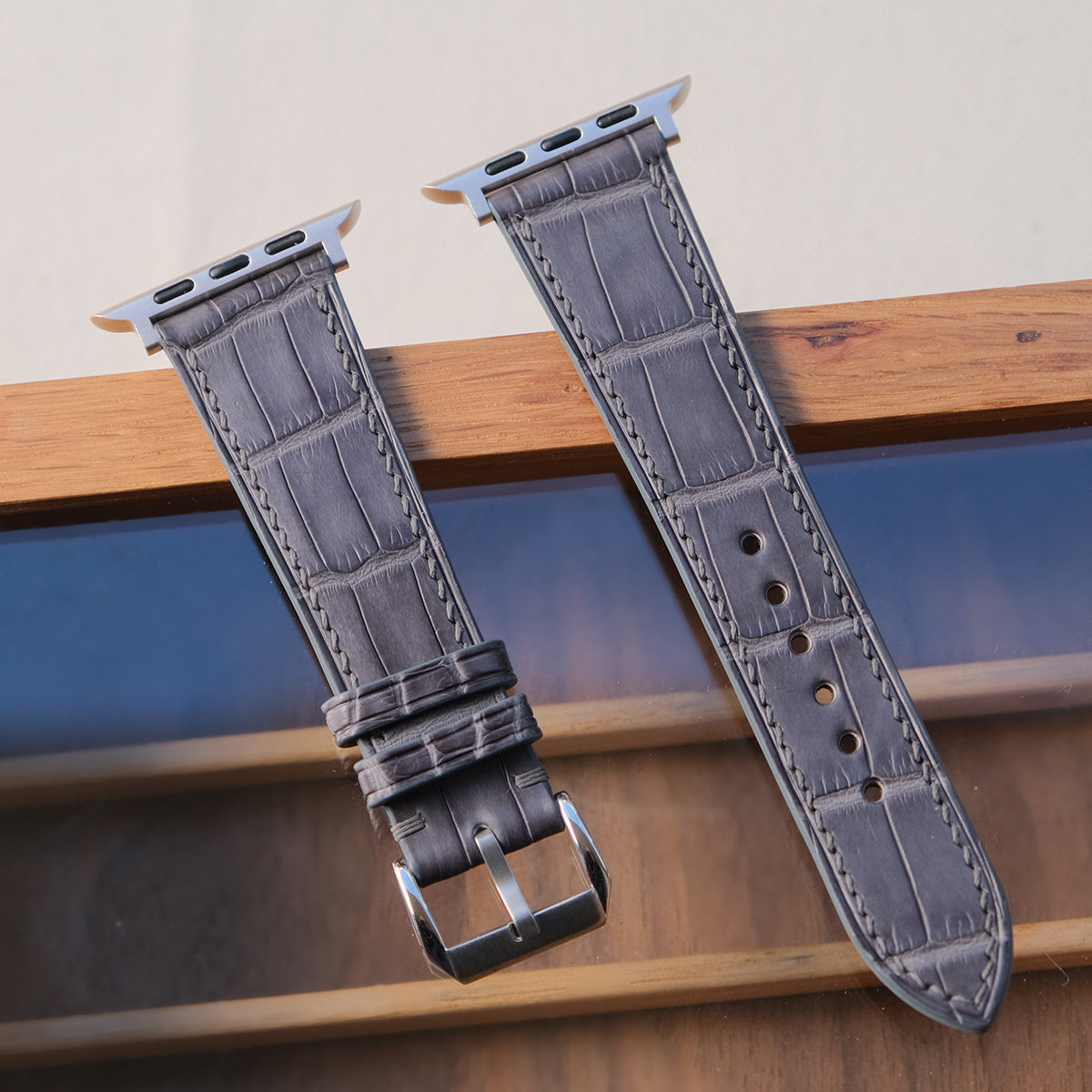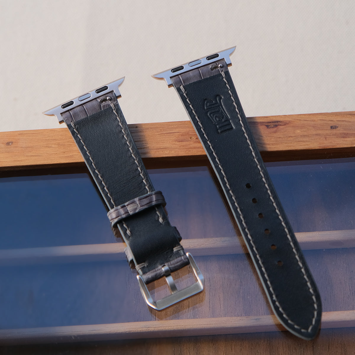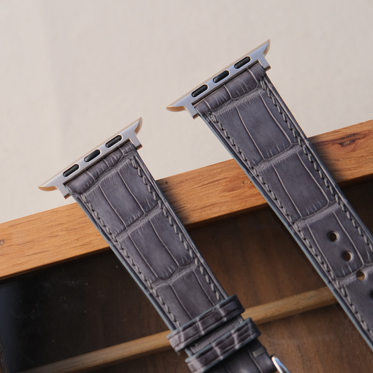 【すぐ発送可】 アップルウォッチ38mm~49mm 長さ75/115mm 墨 クロコダイル