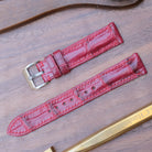 【すぐ発送可】 18mm 長さ70/120mm レッド クロコダイル 腕時計革ベルト