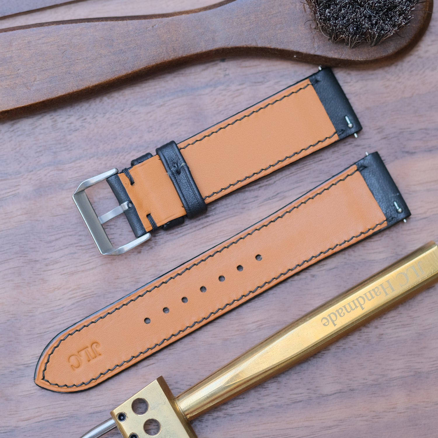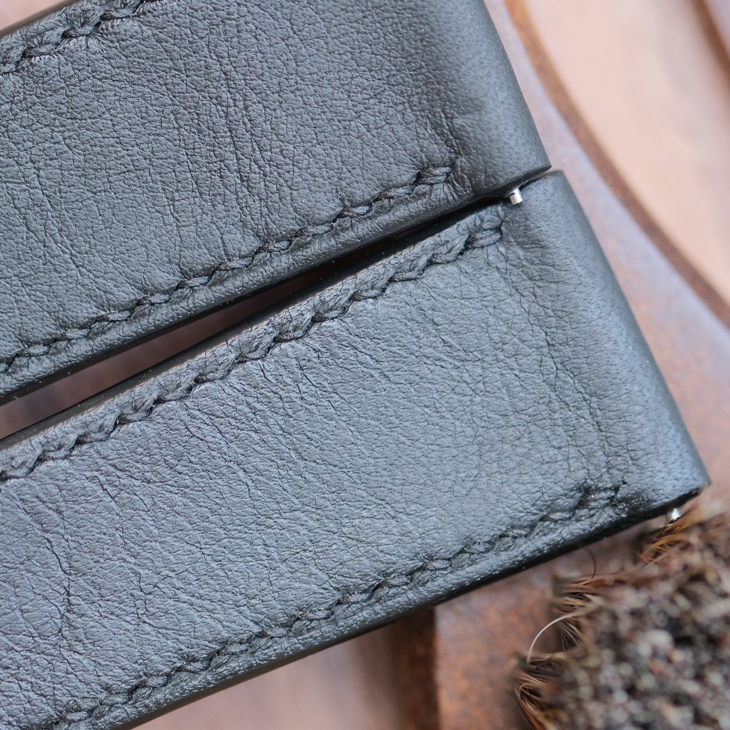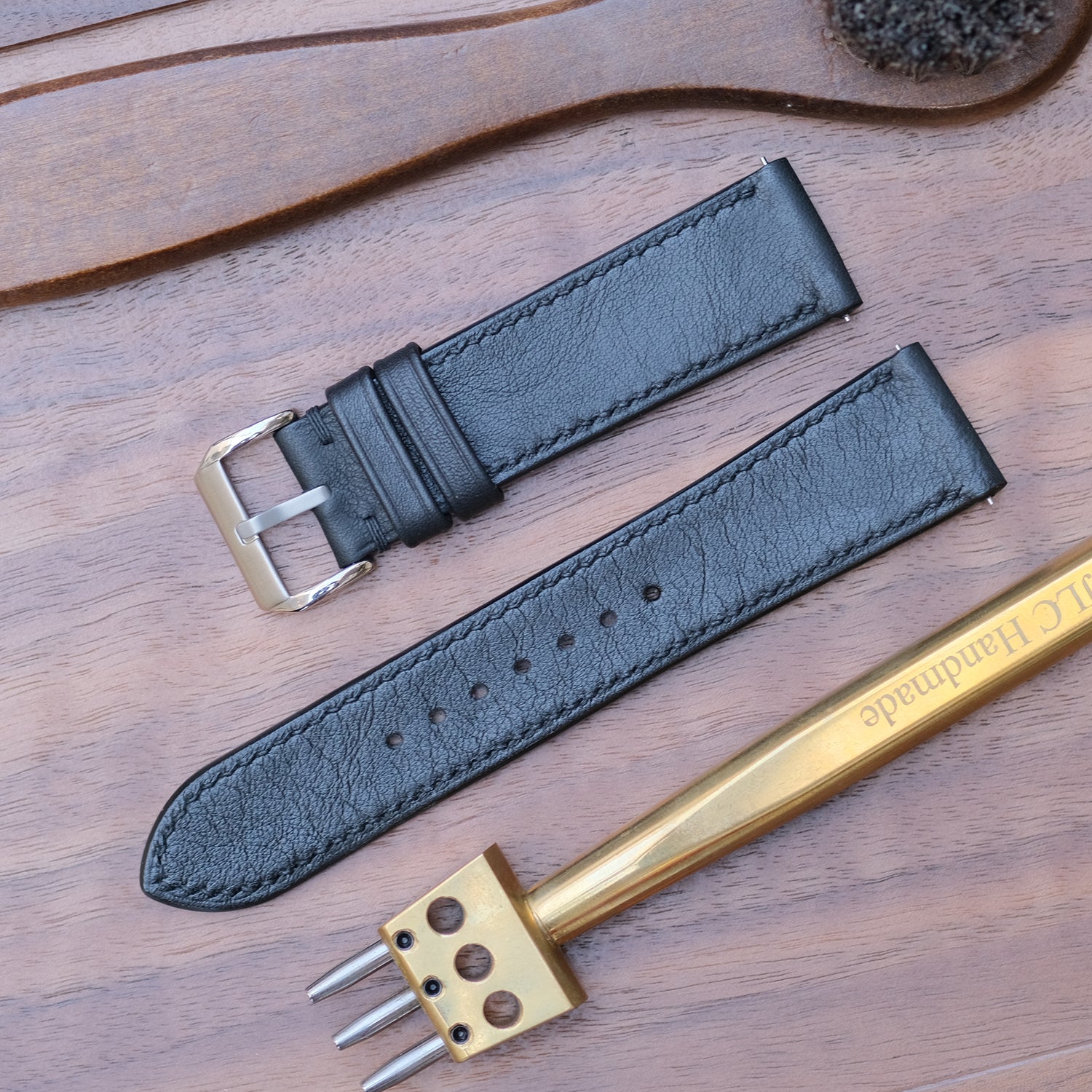【すぐ発送可】20mm 22mm ブラック カーフスキン ヴォー・スイフトレザー 腕時計革ベルト
