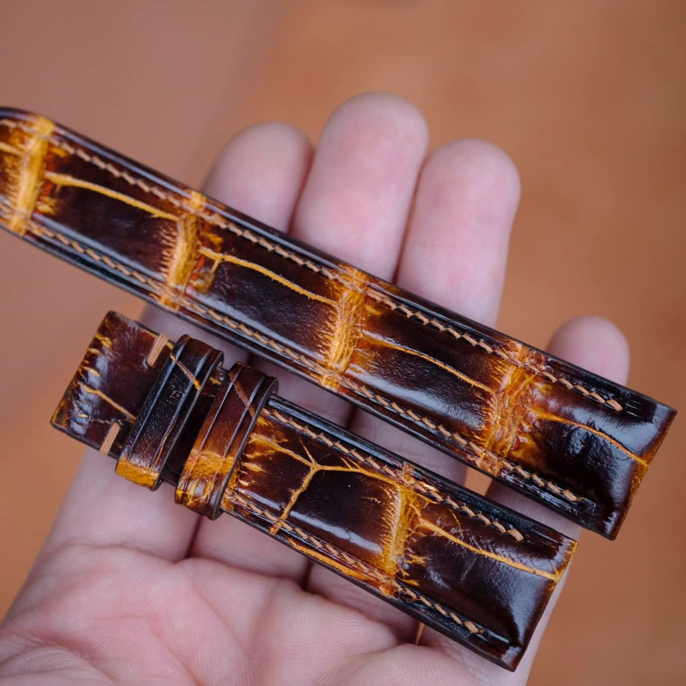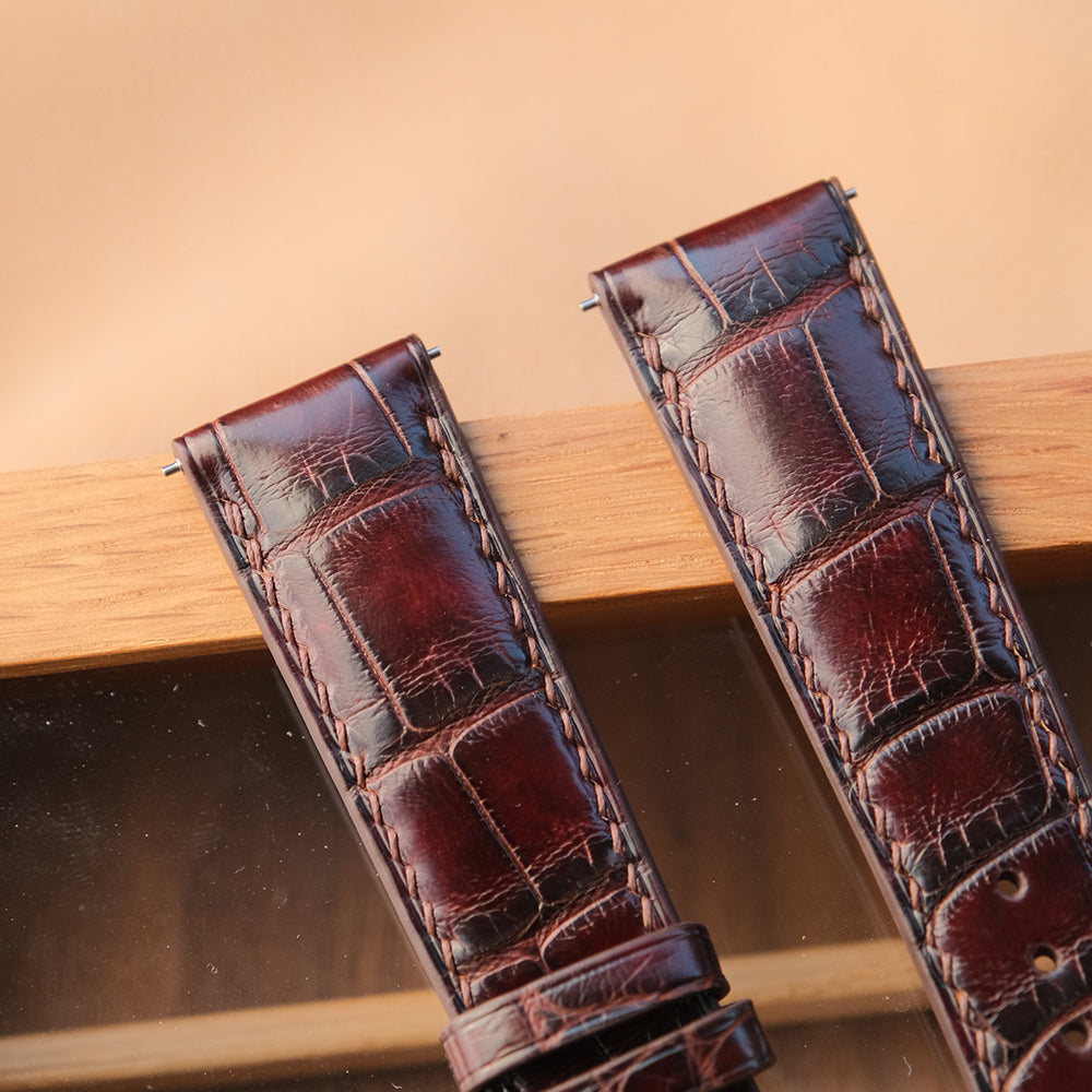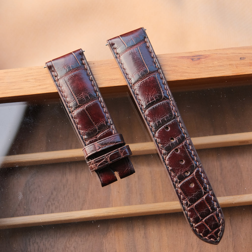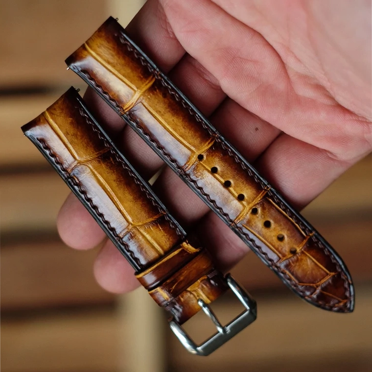 Patina Crocodile Alligator Leather Round Type Genuine Alligator Leather Watch Strap Apple Watch Band Concave Curved End (Bow Ring)