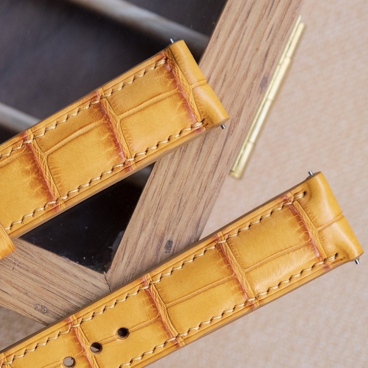 Cognac, Blue Grey, Crocodile, Orange, Alligator Leather, Round Top Type, Genuine Alligator Leather, Genuine Leather, Watch Band, Replacement Strap, Convex and Concave, Curved End (Bow Ring)