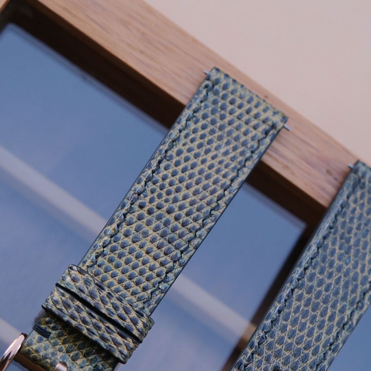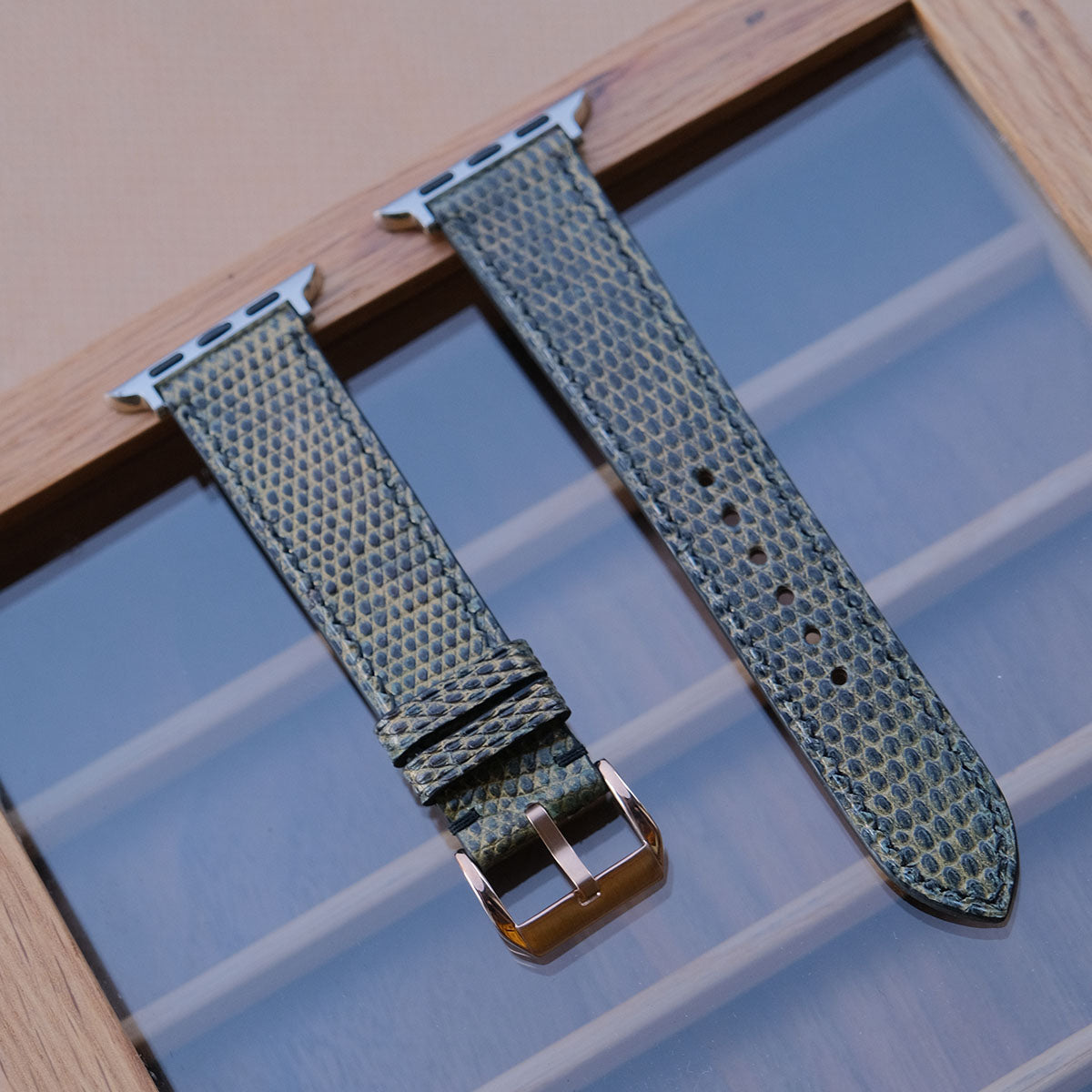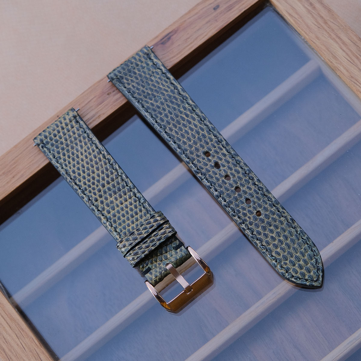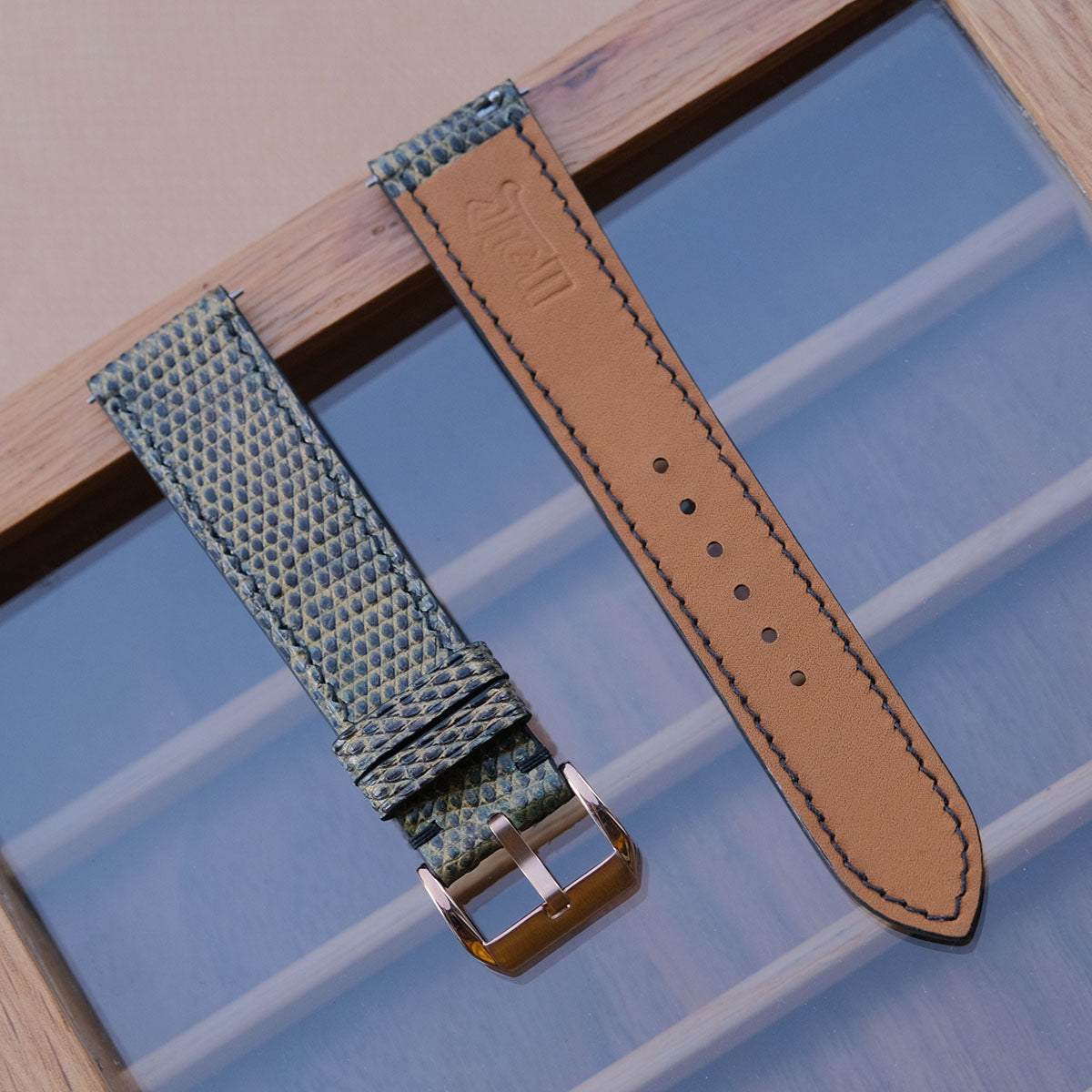 [Ready to ship] 20-18 Length 75/115mm Golden Brown x Green Lizard Leather Vintage