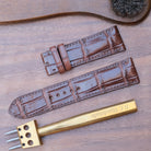 【すぐ発送可】20mm 21mm 24mm ブラウン クロコダイル 腕時計革ベルト