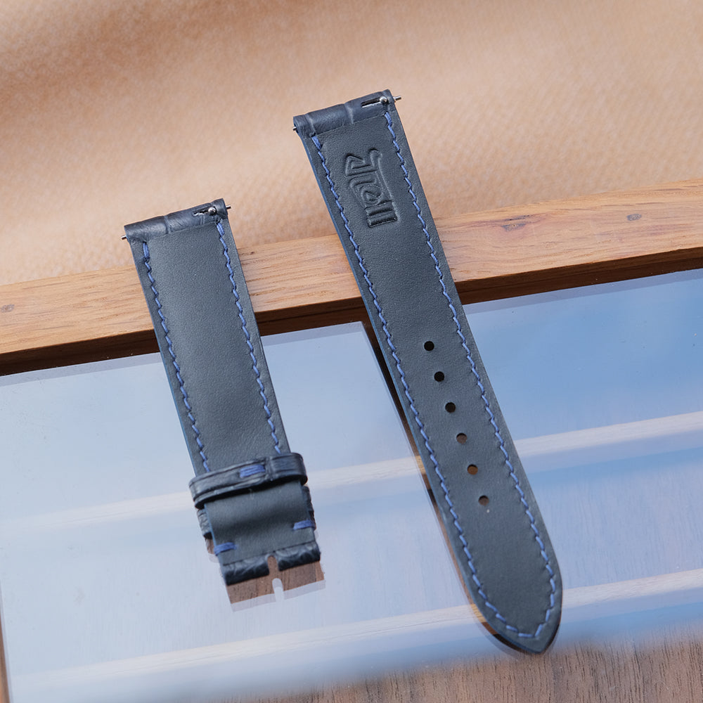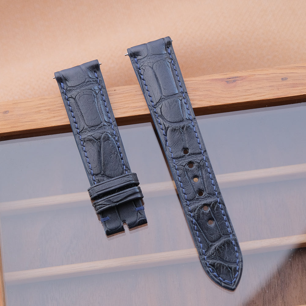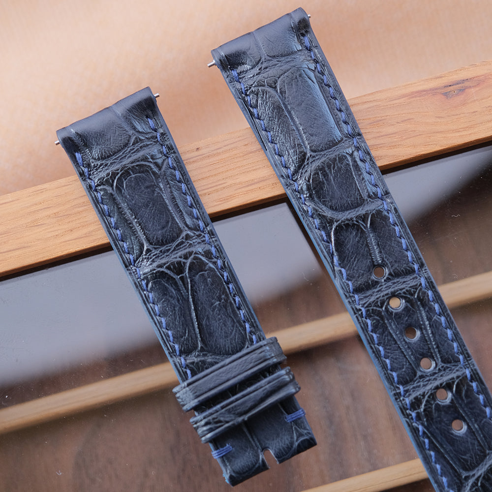 - Material: Dark navy crocodile