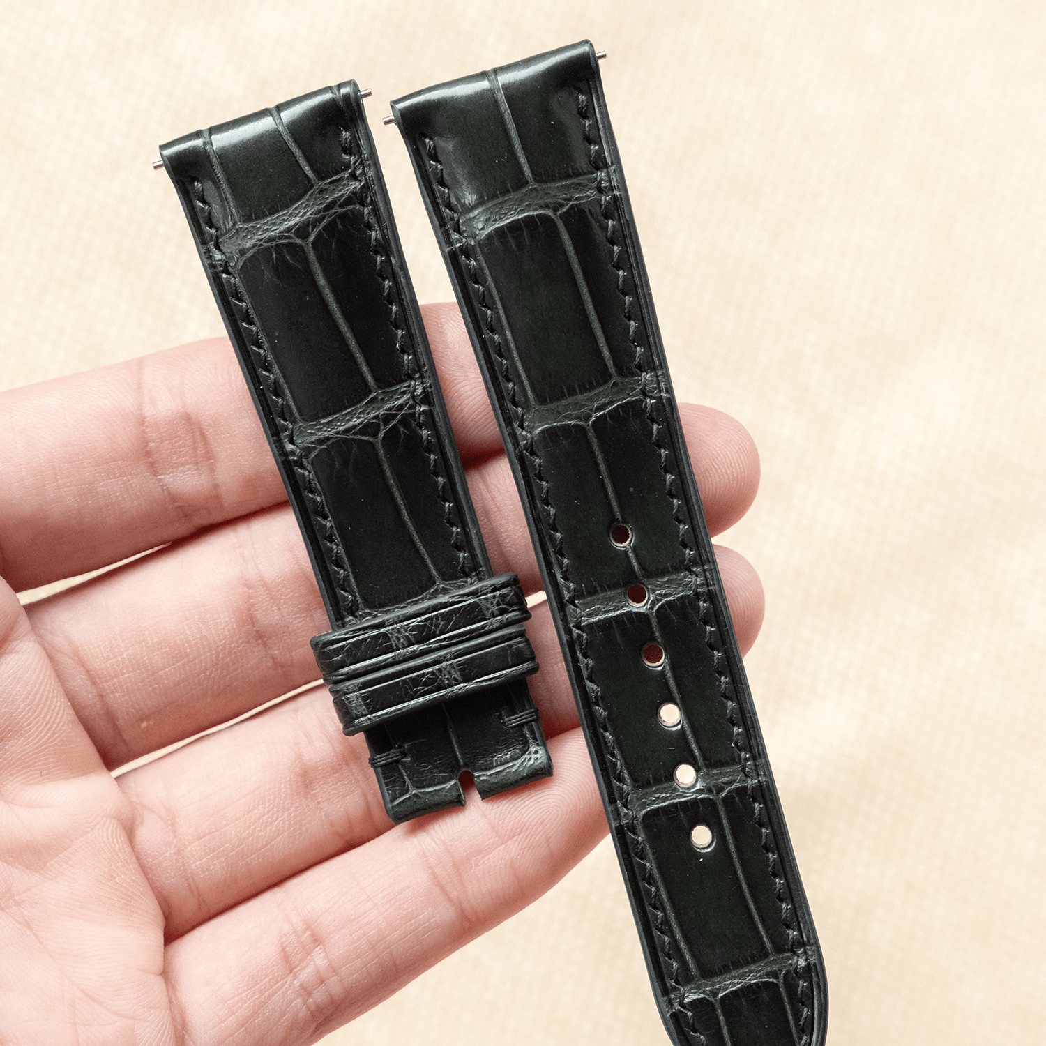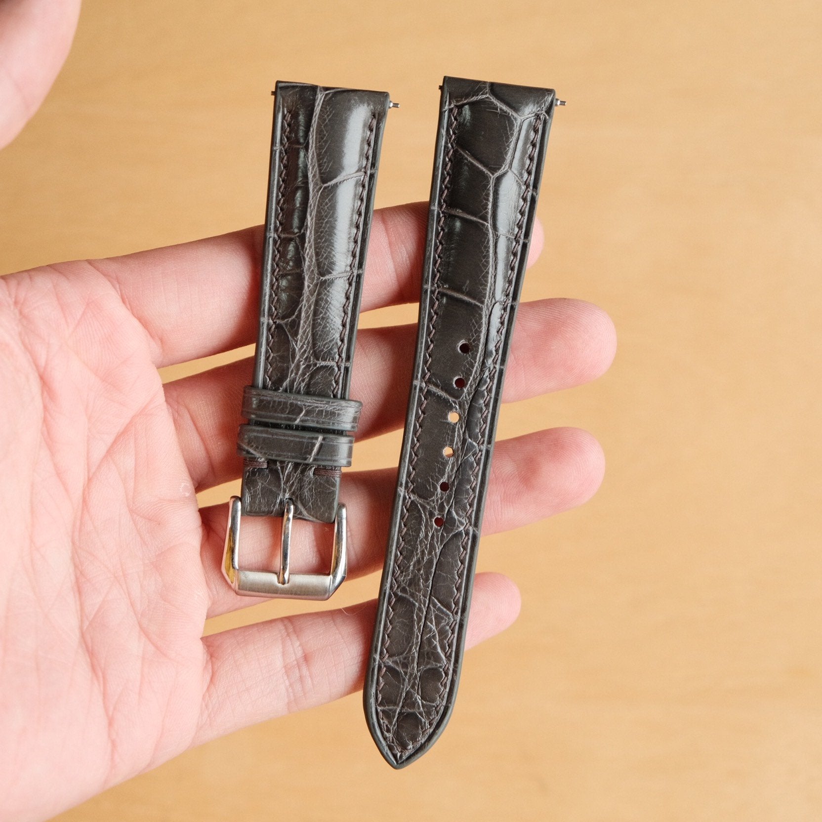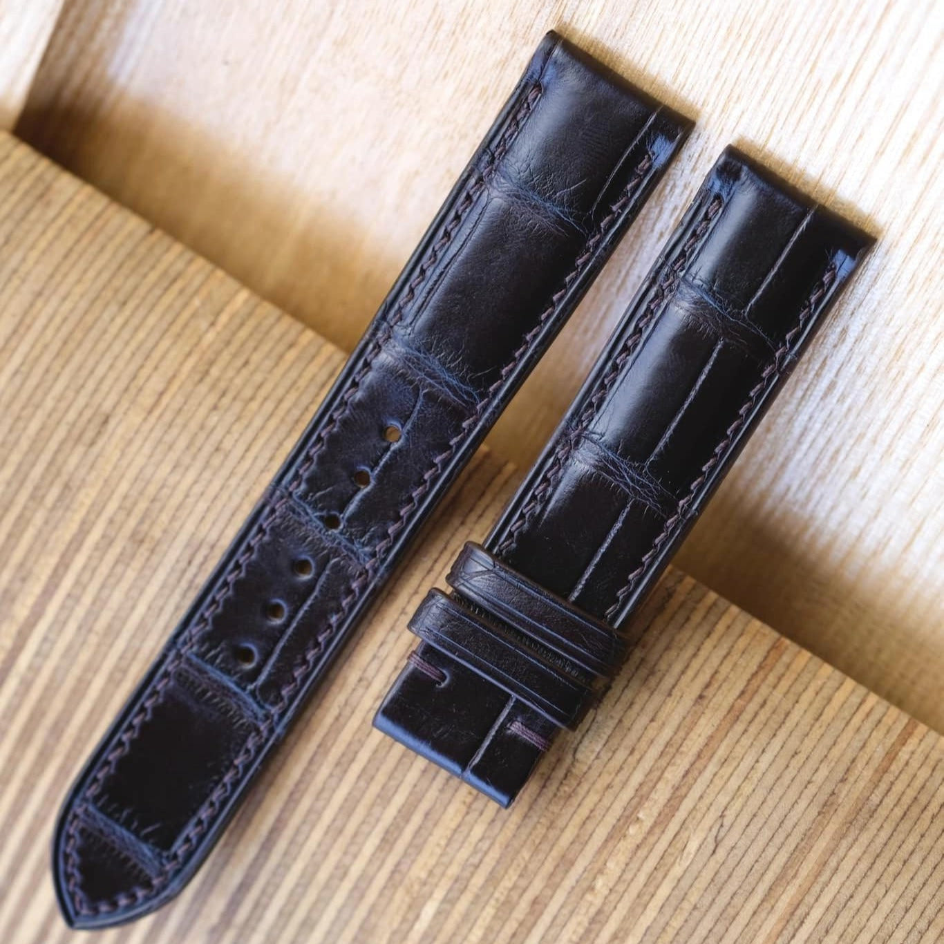 ダークグレー ダークネイビー ダークフォレスト ダークパープル クロコダイル アリゲーターワニ革 甲丸タイプ 本ワニ革 本革 凹凸型 カーブエンド (弓カン)