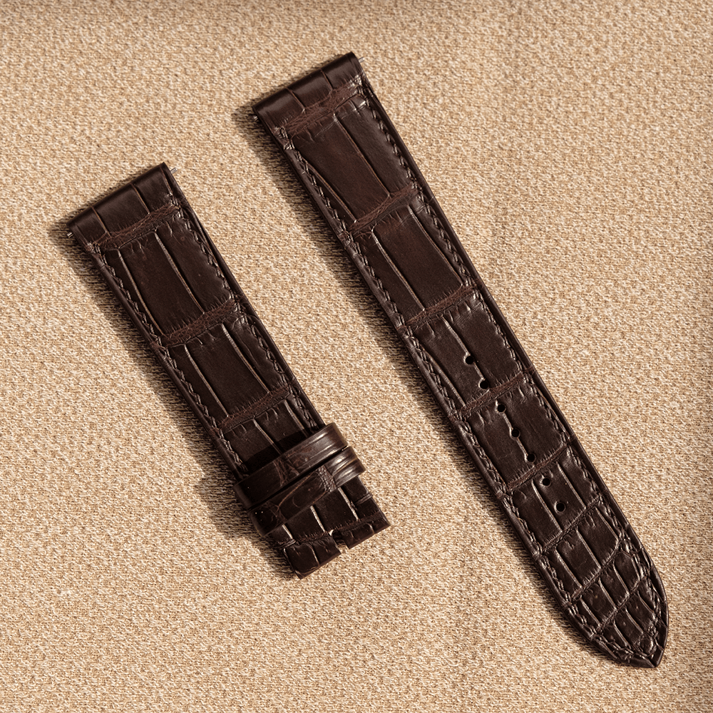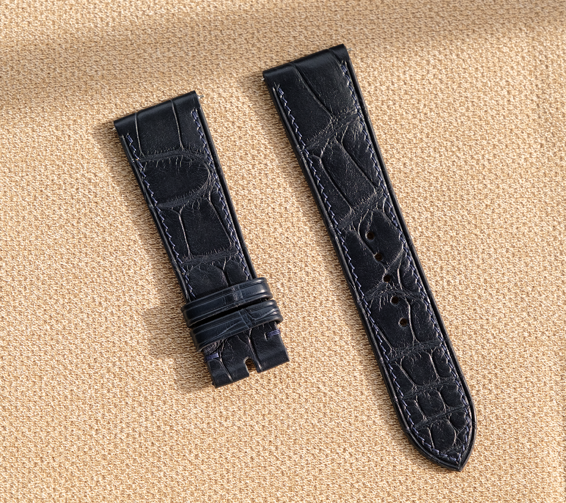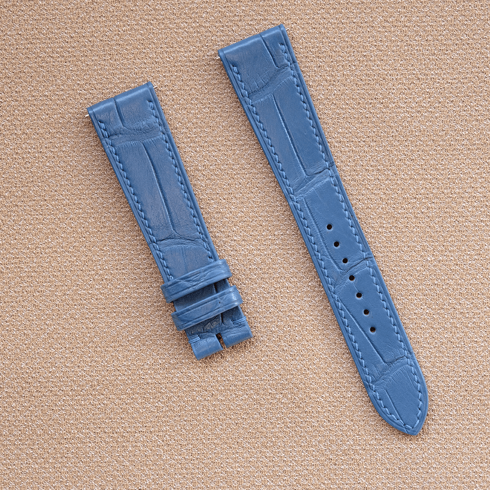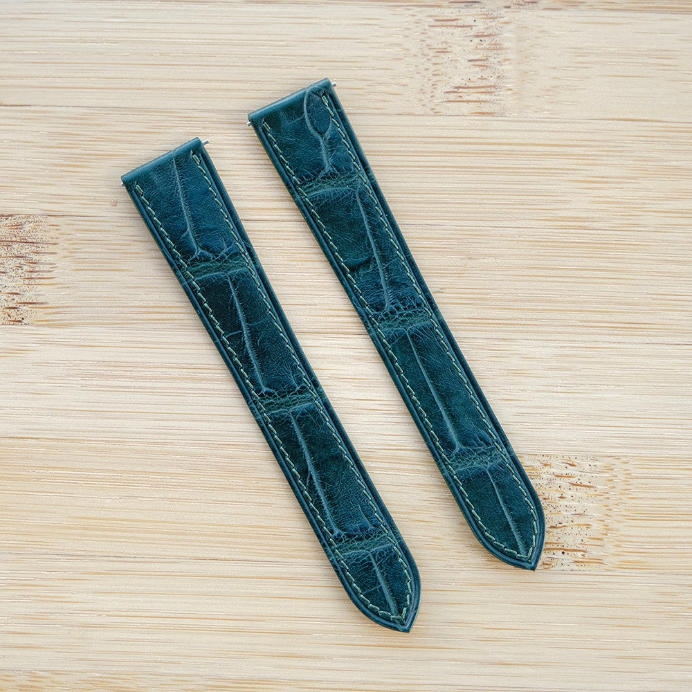 藍染め ヴィンテージブルー マホガニー ダークネイビー グリーン ダークフォレス クロコダイル アリゲーターワニ革 フラットタイプ 腕時計ベルト 凹凸型 カーブエンド (弓カン)
