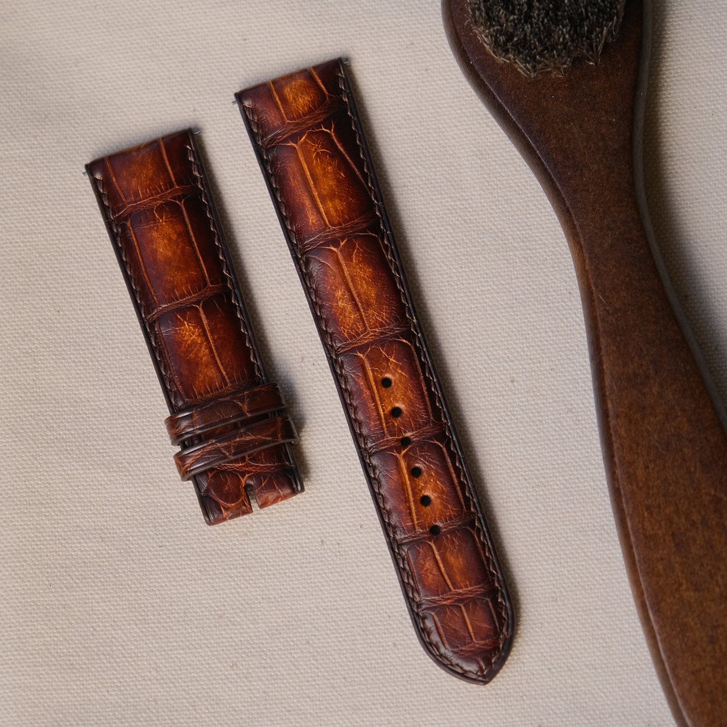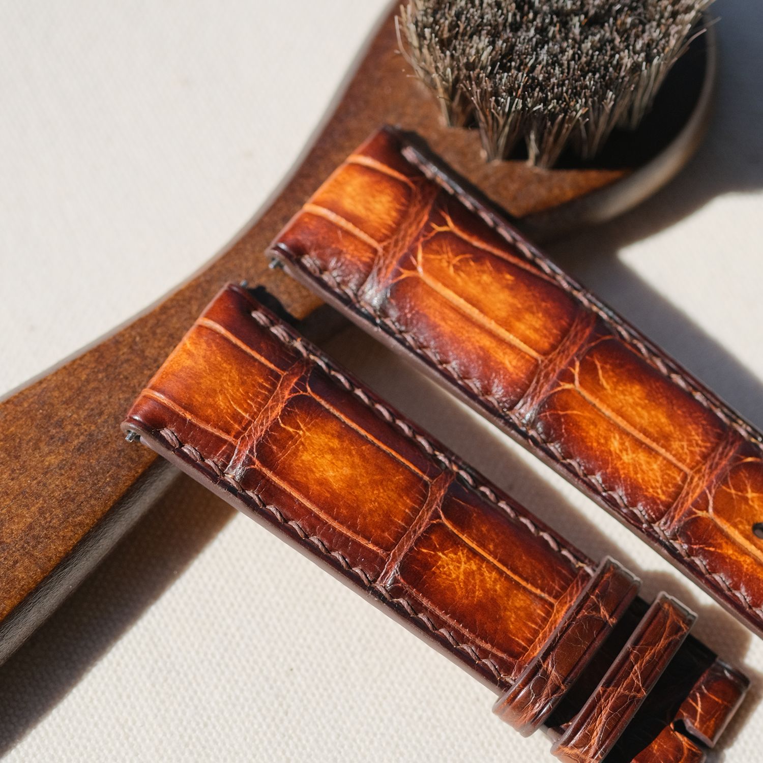 【オーダーメイド】 Patina クロコダイル アリゲーターワニ革 甲丸タイプ 本ワニ革 本革 腕時計ベルト アップルウォッチバンド 凹凸型 カーブエンド (弓カン)