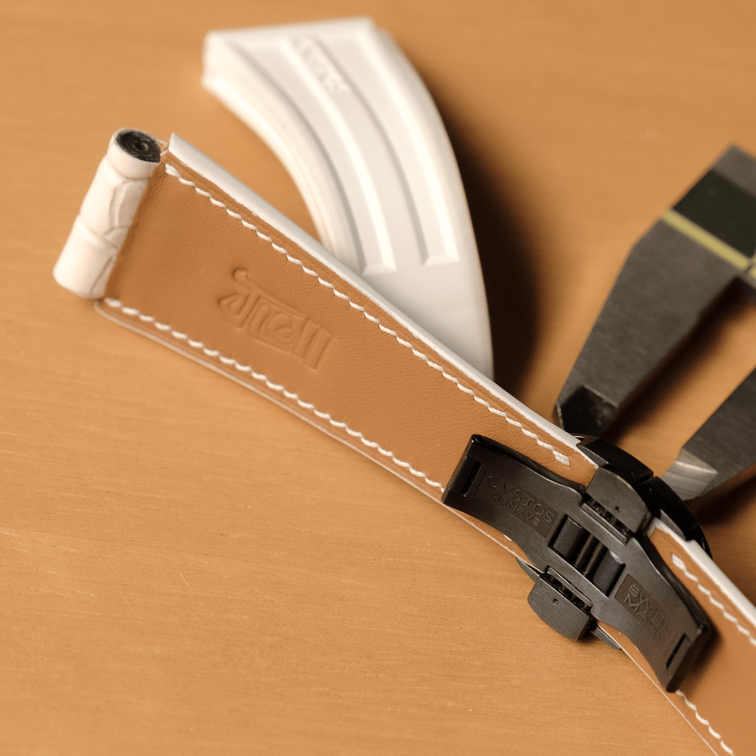 直感的なワンタッチ操作により、ストラップ交換を手軽に実現するアビエ仕様のバネ棒です。この先進的な設計のおかげで、お客様ご自身が自由にストラップを取り替え、時計のスタイルを自在に変えることができます。さらに、ラグ幅24mm以下のカーブエンド仕様にも採用しており、操作性をお楽しみいただけます。