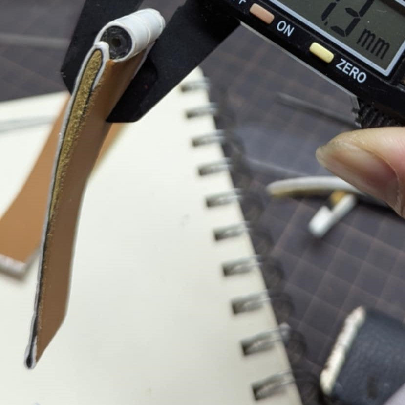 ツェルマット(フランス製)を使用し、カーフならではの繊細な肌触りと柔らかなタッチをそのまま活かしつつ、丁寧な撥水加工を施しております。これにより、防水性および耐アレルギー性を実現し、時計ベルトのライニングなど、直接肌に触れるデリケートなパーツに最適な裏材となっております。