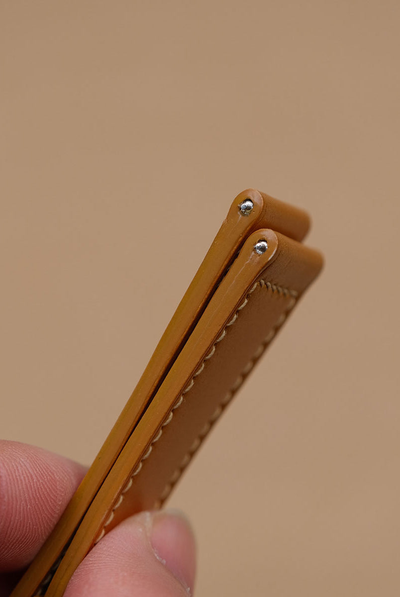 職人が手作業で製作を行います。革の裁断から縫製、縁塗りまで、すべて手作業で仕上げます。